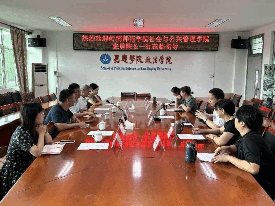 6月20日下午,岭南师范学院社会与公共管理学院院长张勇一行来我院交流,政法学院党委书记黄忠芳、院长蔡国芹等有关领导和老师参加座谈会,座谈会由蔡国芹院长主持。