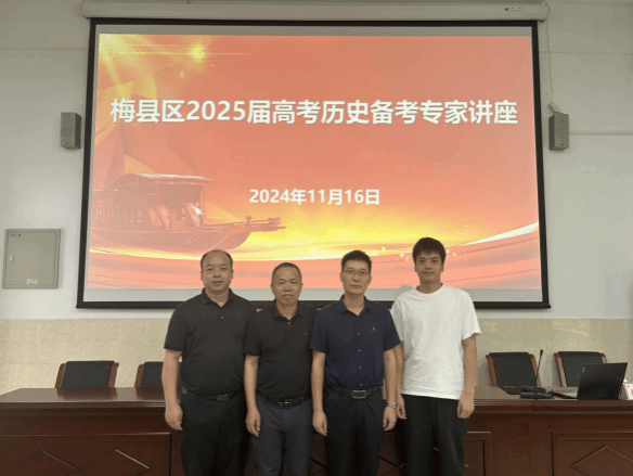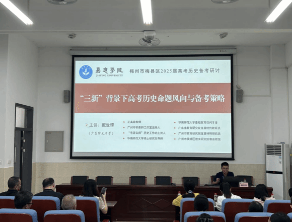 为扎实推进纵向帮扶梅县区“三所学校”质量提升工作,2024年11月16日上午,经与梅县区教育局协商,政法学院邀请广东仲元中学戴世锋老师在梅县区外国语学校为全区高中历史骨干教师作《“三新”背景下高考历史命题风向与备考策略》专题培训讲座。梅县区教师发展中心主任沈仕文致欢迎词并高度赞扬我院组织的此次专题讲座活动。梅县外国语学校党委书记、校长温元年,梅县区教师发展中心师风师德部主任宋友均、教育科研部主任熊绍豪,我院纵向帮扶工作队联络人窦禄军博士、队员李森林博士等出席欢迎仪式。梅县区三十多位高中历史骨干教师听取讲座。