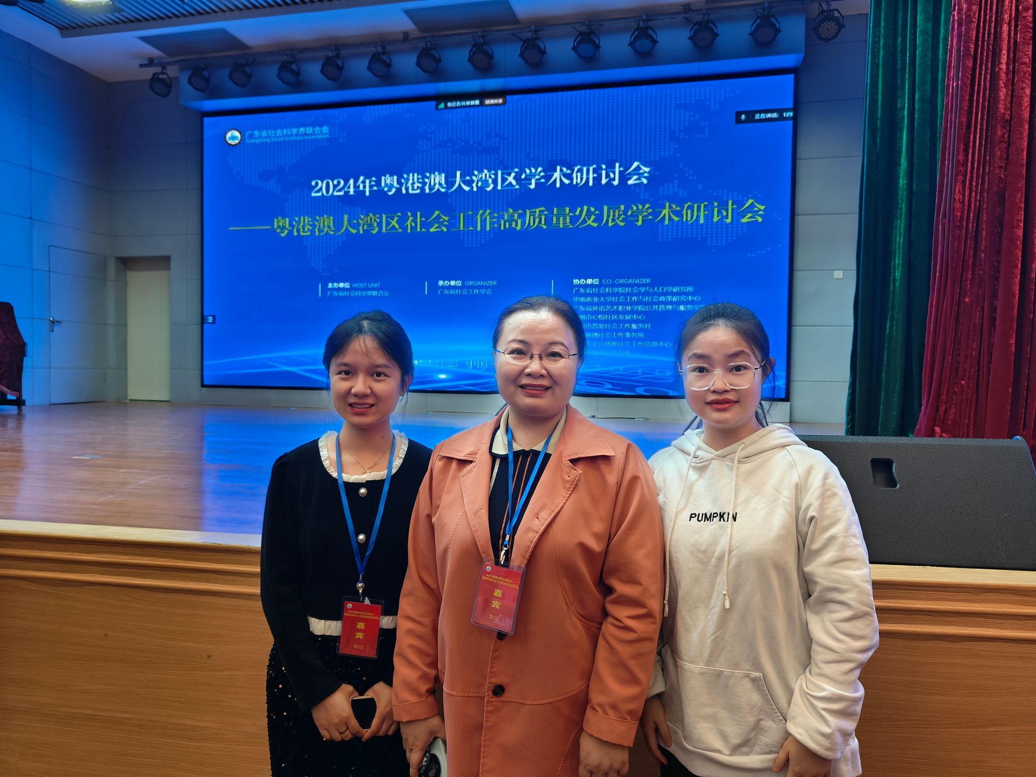 11月23日,以“粤港澳大湾区社会工作高质量发展”为主题的2024年粤港澳大湾区学术研讨会在广东社会科学中心开幕。本次研讨会由广东省社会科学界联合会主办,广东省社会工作学会承办。省委社会工作部部长、省委“两新”工委书记崔建军,省社科联党组书记、专职副主席李宜航,省社科院党组副书记、院长王廷惠出席并致辞。我院社工系陶叡教授、温丽晖老师以及社工系2106班学生刘士碧和2206班魏怡静受邀参加本次学术交流。