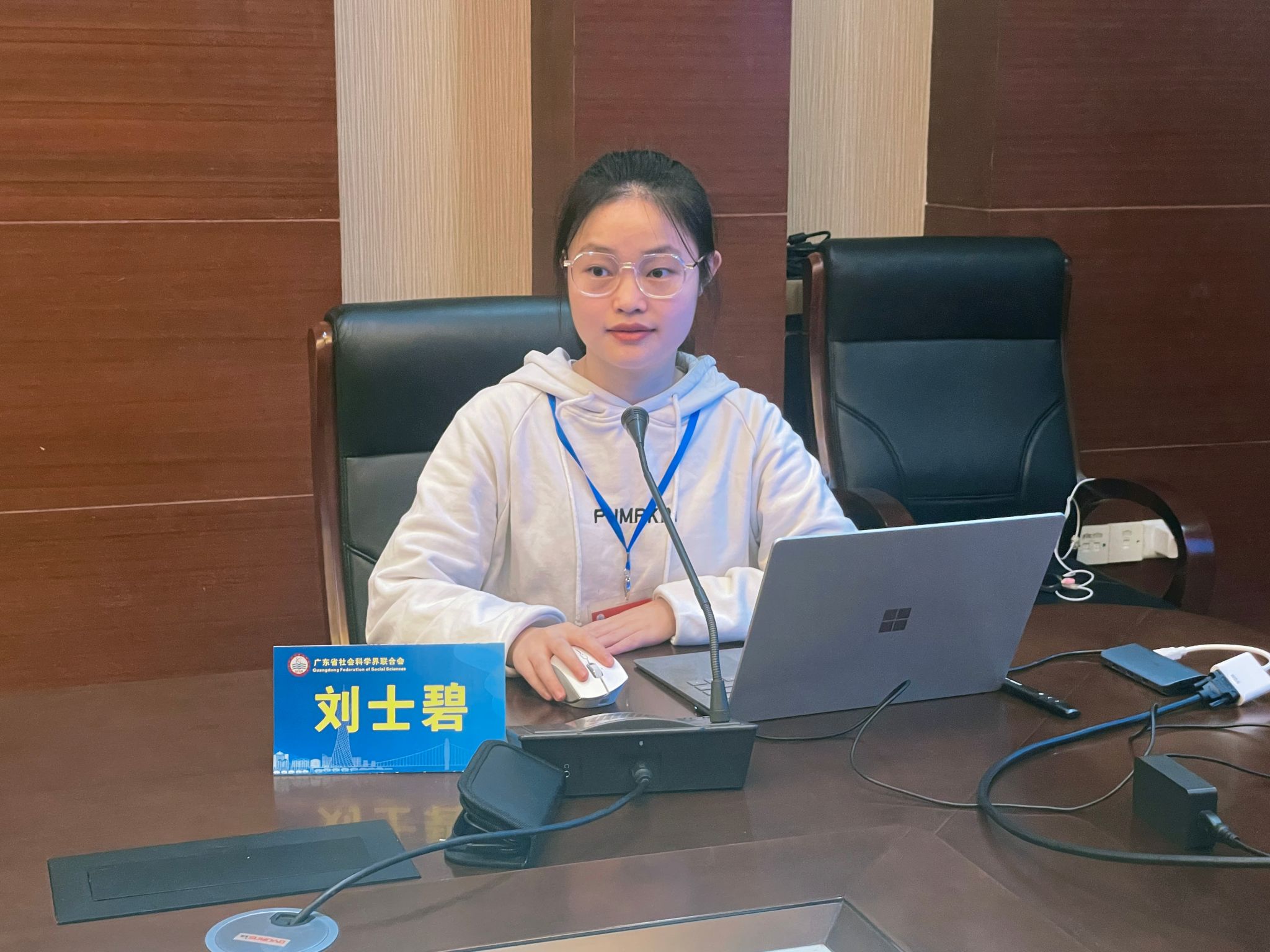 在分论坛会上,我院学子刘士碧是现场唯一发言的本科生代表。她以“富岭村养老服务模式探索:社会工作与基层治理的融合实践”为主题的发言,与来自高校科研单位和社会工作服务机构的36位专家学者、实务工作者共同分享了实务探索和研究成果,探讨了未来粤港澳大湾区社会工作高质量发展的路径和策略。