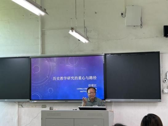 座谈会后,任世江教授开展了一场题为《历史教学研究的重心与路径》的专题学术讲座。讲座由李森林博士主持,100多名历史学专业学生聆听了讲座。