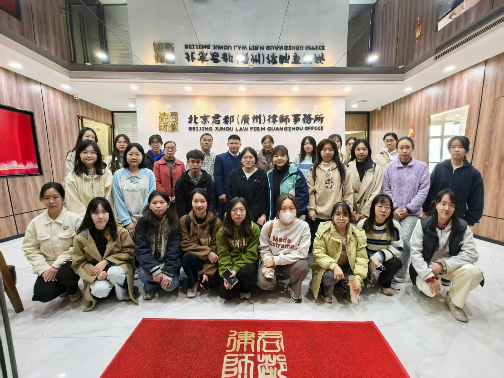 为深入贯彻落实党的二十届三中全会精神,积极探索和实践高素质涉外法治人才的培养方式,提高涉外法治人才培养质量,1月14日,政法学院院长蔡国芹、副院长侯聪玲及相关指导教师带领“涉外法治人才班”学生,前往广州开展了一系列见习活动。