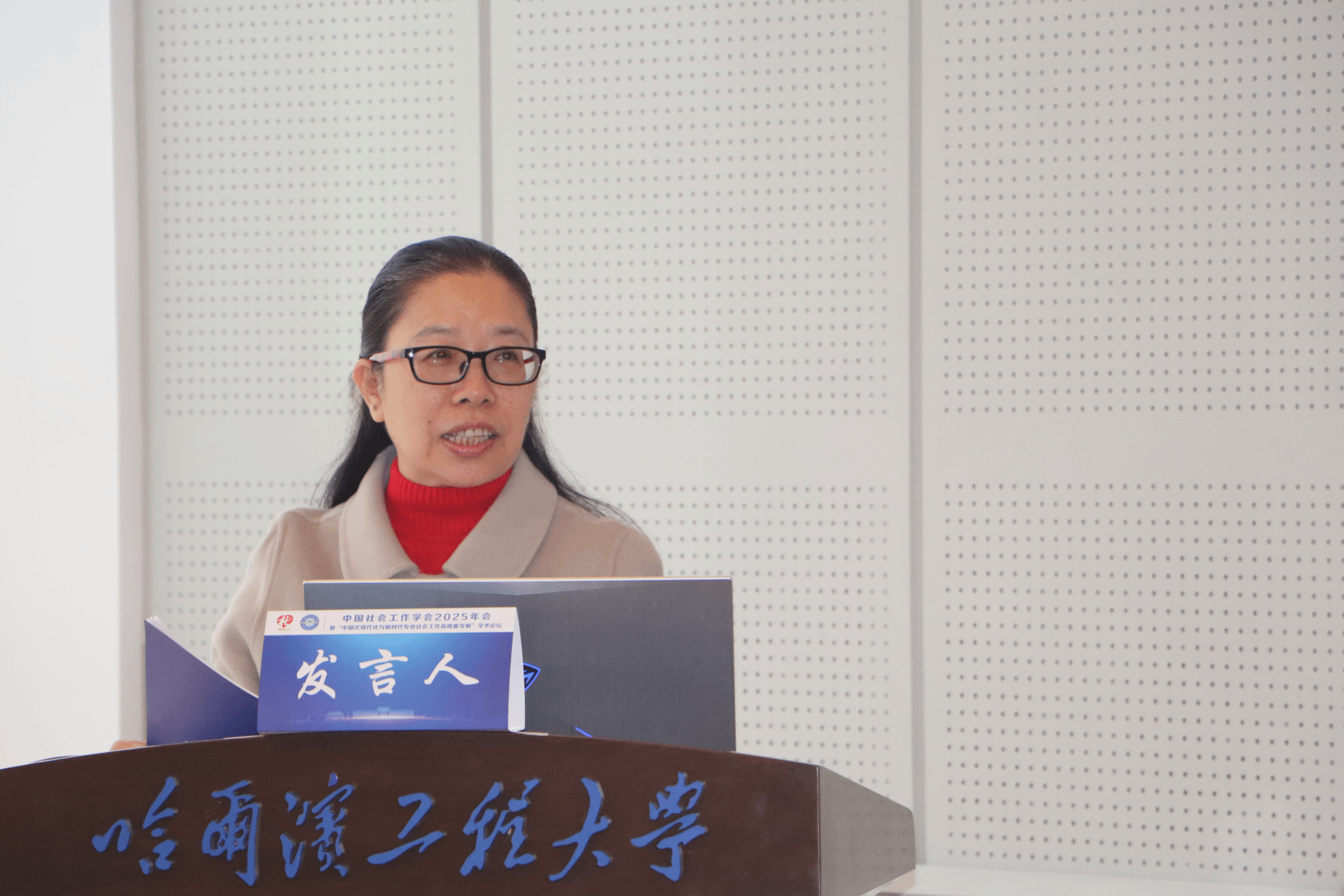 2025年12月7日,由中国社会工作学会主办、哈尔滨工程大学承办、嘉应学院法学与公共事务学院等单位协办的“中国社会工作学会2025年会暨‘中国式现代化与新时代专业社会工作高质量发展’学术论坛”在哈尔滨隆重举行。嘉应学院法学与公共事务学院作为分论坛六“高层次社会工作专业人员培养与能力建设”的承办单位之一,由学院党委书记钟念军、院长陶叡教授带领社会工作专业申硕团队相关教师全程参与,负责该论坛的学术组织与协调工作,展现了我校在社会工作学科建设与人才培养方面的积极作为与专业影响力。