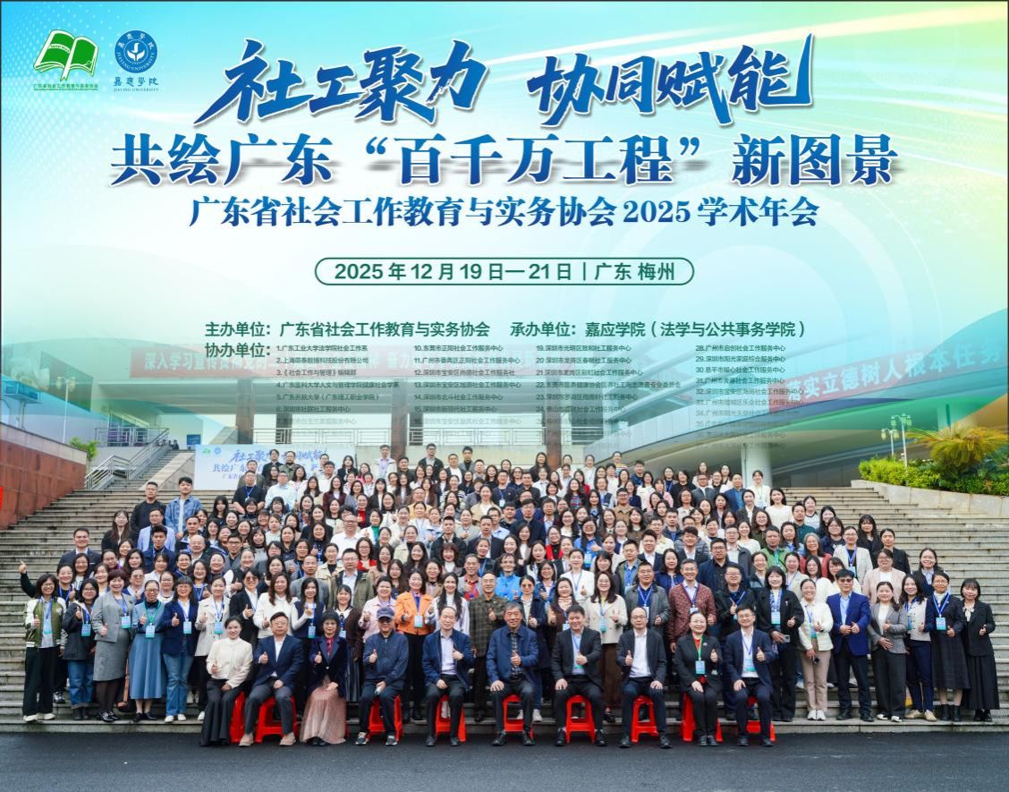 2025年12月19日至21日,由广东省社会工作教育与实务协会主办、嘉应学院法学与公共事务学院承办的“社工聚力 协同赋能 共绘广东‘百千万工程’新图景”2025学术年会在嘉应学院成功举行。本次会议开幕式由嘉应学院法学与公共事务学院院长陶叡教授主持,汇聚了来自中山大学、云南大学、深圳大学、广东工业大学、广东外语外贸大学、华南农业大学、广东医科大学及嘉应学院等多所高校的知名学者,以及来自广州、深圳、东莞等地近40家社会工作服务机构的资深从业者共300余名代表,深入探讨专业社会工作在服务广东“百县千镇万村高质量发展工程”中的新定位、新功能与新路径。