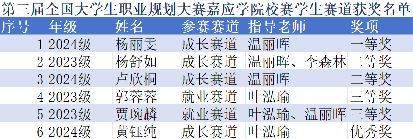近日,第三届全国大学生职业发展大赛校级选拔赛圆满落幕。我院学子凭借清晰的职业规划、出色的现场表现和扎实的综合素养,在比赛中脱颖而出,荣获一等奖1项,二等奖2项,三等奖2项,优秀奖1项的好成绩,充分展现了我院学子的卓越风采和学院人才培养的丰硕成果。