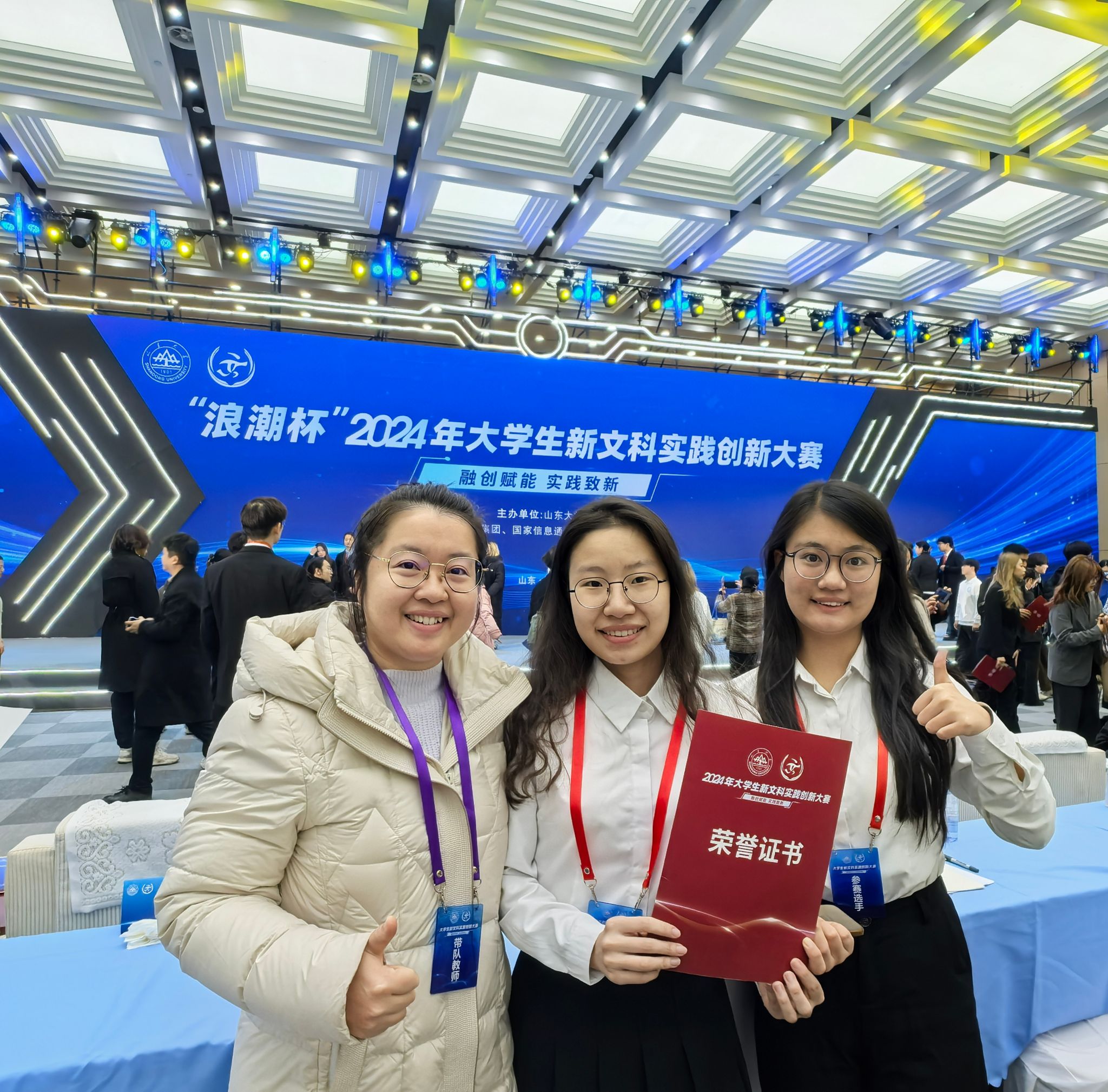 12月21日至22日,由全国新文科教育研究中心和山东大学发起,山东大学主办的首届大学生新文科实践创新大赛决赛在山东济南举行。我院参赛队伍经校级初赛评审推荐和决赛网评后,共有5支队伍晋级决赛,有2支队伍参加现场比赛,经两天的现场角逐,斩获国家级银奖两项、铜奖两项、优秀奖一项。