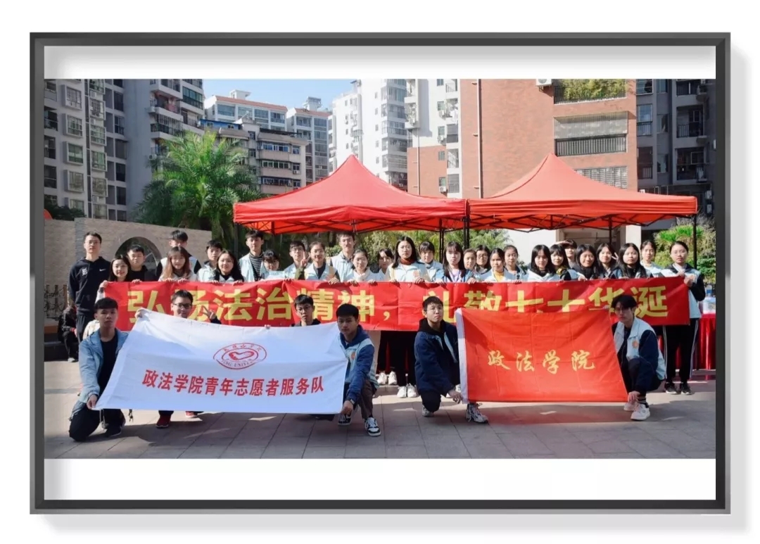为进一步贯彻落实党的十九大精神,弘扬宪法精神,增强同学们的法律意识,政法学院特举办了12.4全国法制宣传日系列活动。