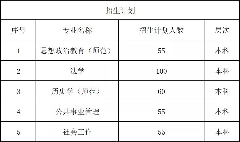 政法学院现设有思想政治教育(师范)、法学、历史学(师范)、公共事业管理、社会工作等五个本科专业。