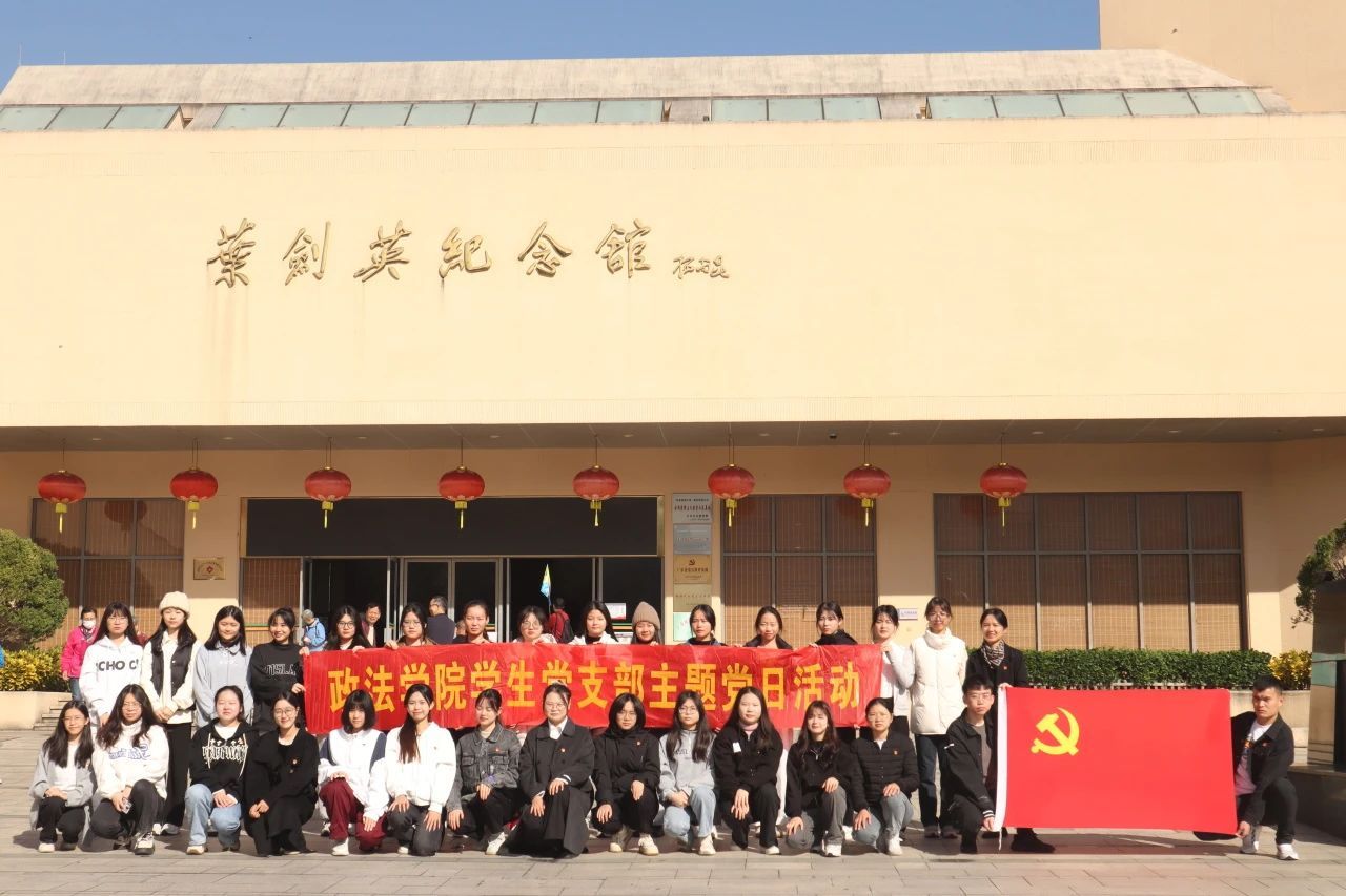 为全面学习贯彻党的二十大精神,提高大学生党员对全面依法治国重要性的认识,2023年11月19日,政法学院学生党支部组织学生党员前往叶剑英纪念园开展主题党日活动。